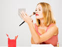 You don’t need as much blush at night as you do during the day. Since you’ve been up and at it for hours, your blood is probably pumping well and doing a good job of giving you a rosy complexion. If you do touch up your blush, don’t add much more than you started with.